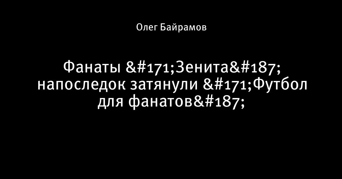 6 декабря 2019, 20:24 Фанаты «Зенита» напоследок затянули «Футбол для фанатов» Этот пост написан пользователем Sports.ru, начать писать может каждый болельщик (сделать это можно здесь). Автор Олег Байрамов