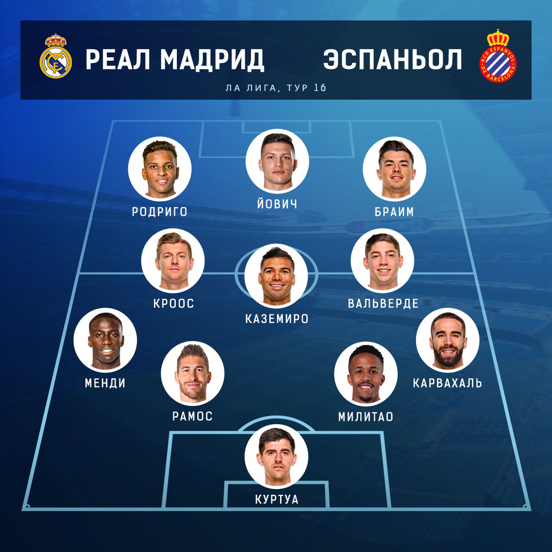 📊 С Винисиусом и Родриго, с Браимом или Иско? Выбираем состав на матч с «Эспаньолом»