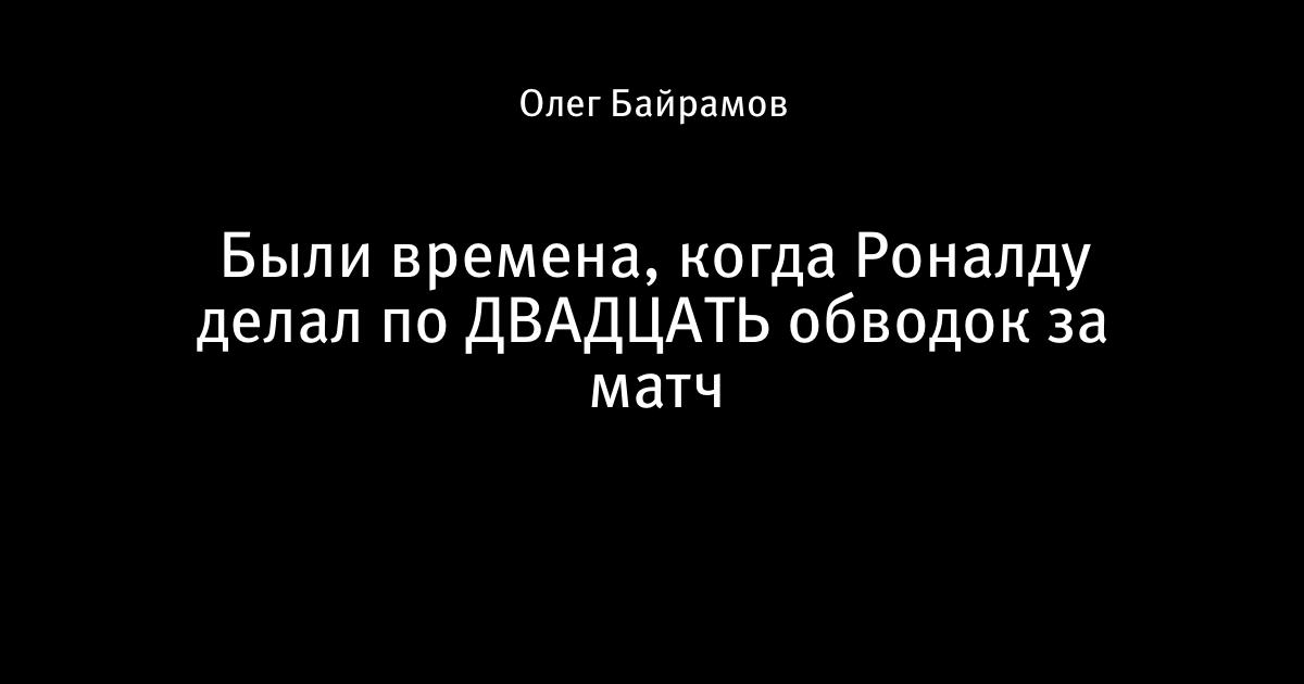 7 декабря 2019, 02:00 Были времена, когда Роналду делал по ДВАДЦАТЬ обводок за матч Этот пост написан пользователем Sports.ru, начать писать может каждый болельщик (сделать это можно здесь). Автор Олег Байрамов