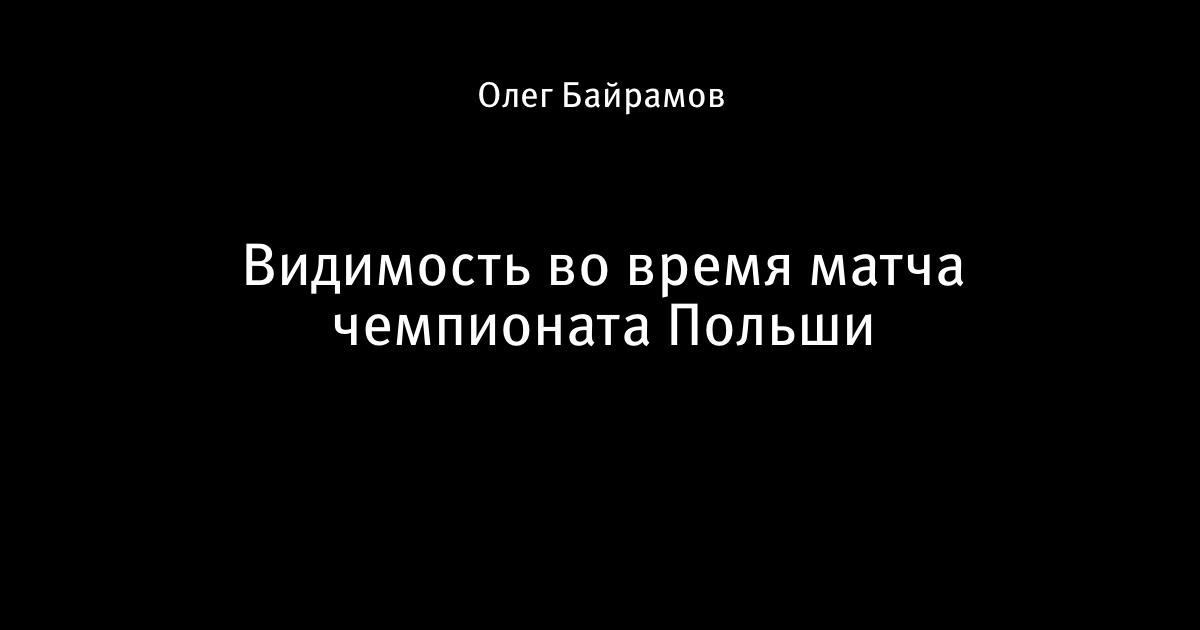 7 декабря 2019, 22:18 Видимость во время матча чемпионата Польши 😳 Этот пост написан пользователем Sports.ru, начать писать может каждый болельщик (сделать это можно здесь). Автор Олег Байрамов