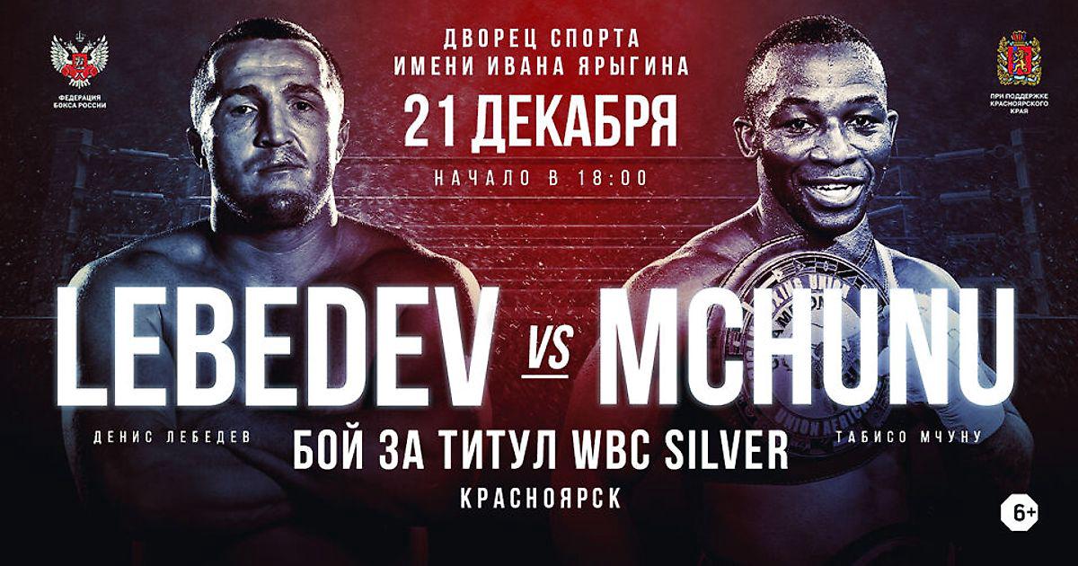 21 декабря во Дворце спорта им. Ивана Ярыгина пройдет бой за титул WBC Silver между Лебедевым и боксером из Южной Африки Табисо Мчуну. Кроме того, зрители увидят поединок бывшего обладателя титула WBC Silver Дмитрия Кудряшова с Вацлавом Пейсаром из Чехии.