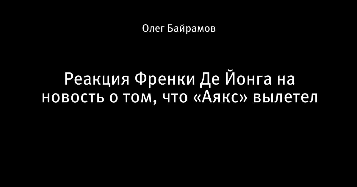 11 декабря 2019, 03:02 Реакция Френки Де Йонга на новость о том, что «Аякс» вылетел Этот пост написан пользователем Sports.ru, начать писать может каждый болельщик (сделать это можно здесь). Автор Олег Байрамов
