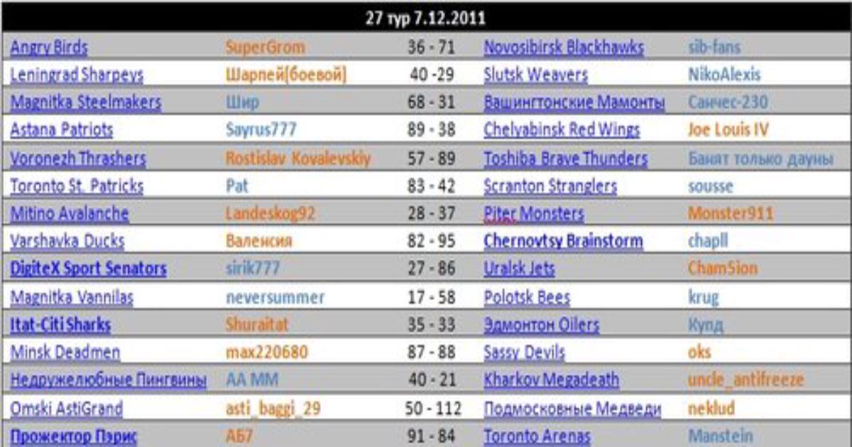 А лучшим результатом стали 112 очков команды Подмосковные Медведи. В 27-ом туре медведи уничтожили Omski AstiGrand.