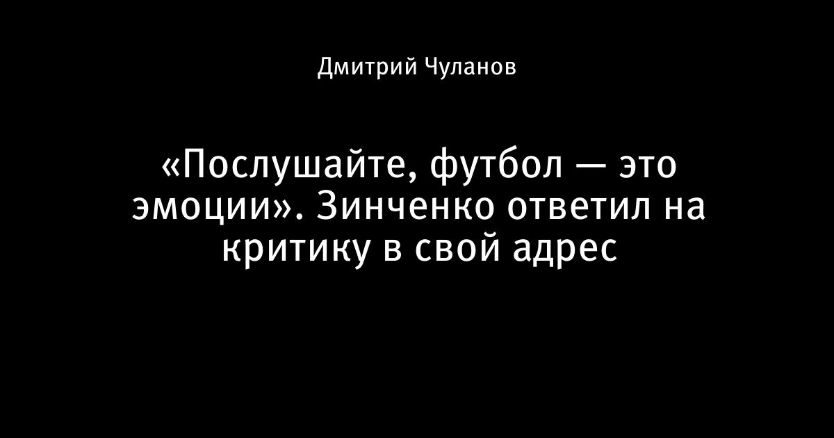 «Послушайте, футбол — это эмоции». Зинченко ответил на критику в свой адрес