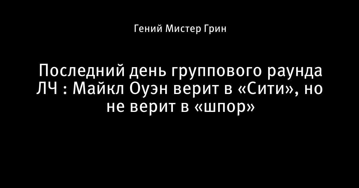 Последний день группового раунда ЛЧ : Майкл Оуэн верит в «Сити», но не верит в «шпор»