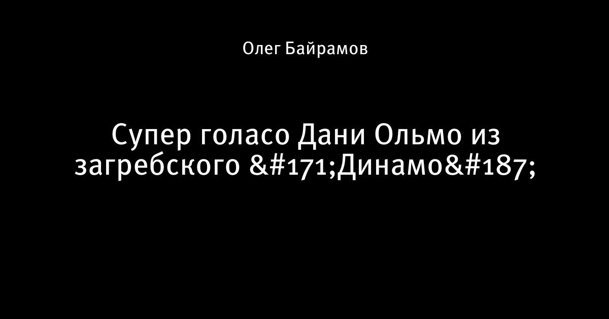 12 декабря 2019, 00:47 Супер голасо Дани Ольмо из загребского «Динамо» 🔥 Этот пост написан пользователем Sports.ru, начать писать может каждый болельщик (сделать это можно здесь). Автор Олег Байрамов