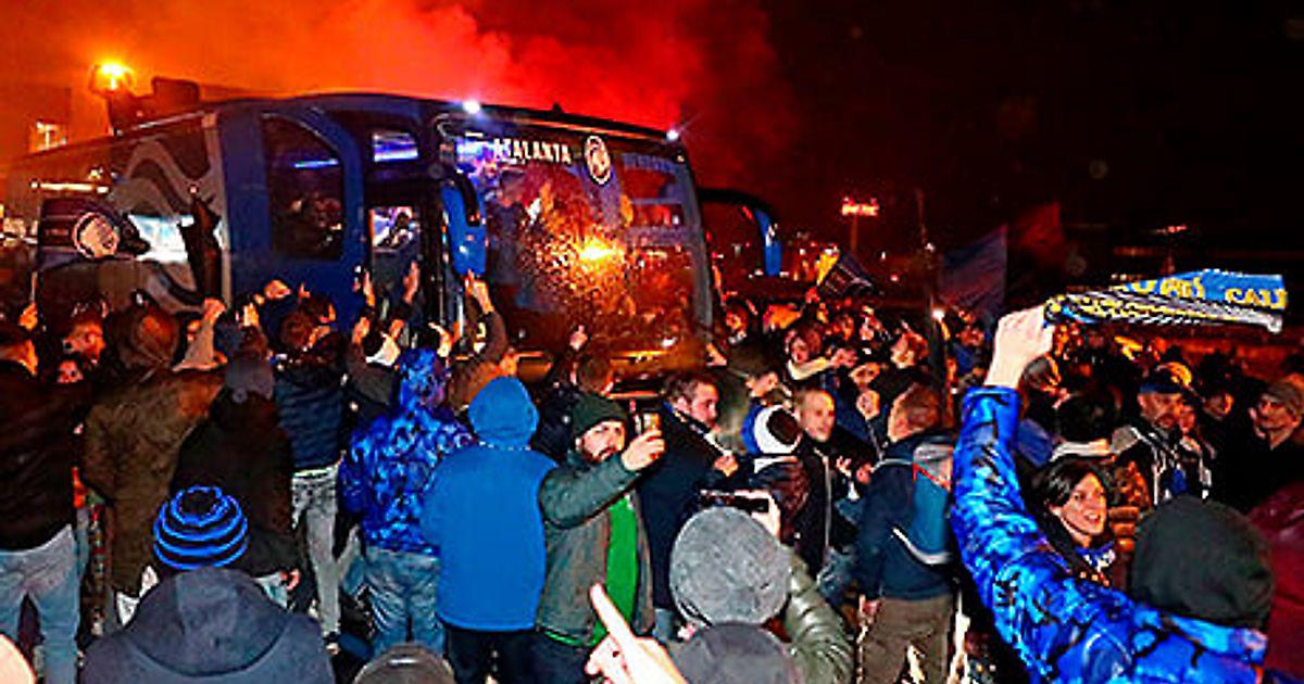 Ночь счастья в аэропорту Бергамо: фанаты пели, а футболисты забирались на крышу автобуса из люков