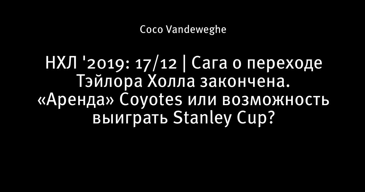 НХЛ '2019: 17/12 | Сага о переходе Тэйлора Холла закончена. «Аренда» Coyotes или возможность выиграть Stanley Cup?