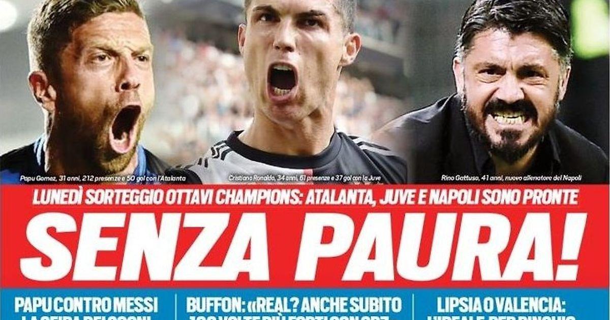В понедельник жеребьёвка 1/8-финала Лиги Чемпионов: «Аталанта», «Юве» и «Наполи» готовы. Папу против Месси, схватка мечты. Буффон: «Реал»? Даже сразу, мы в 100 раз сильнее с CR7». «Лейпциг» или «Валенсия»: идеал для Рино.