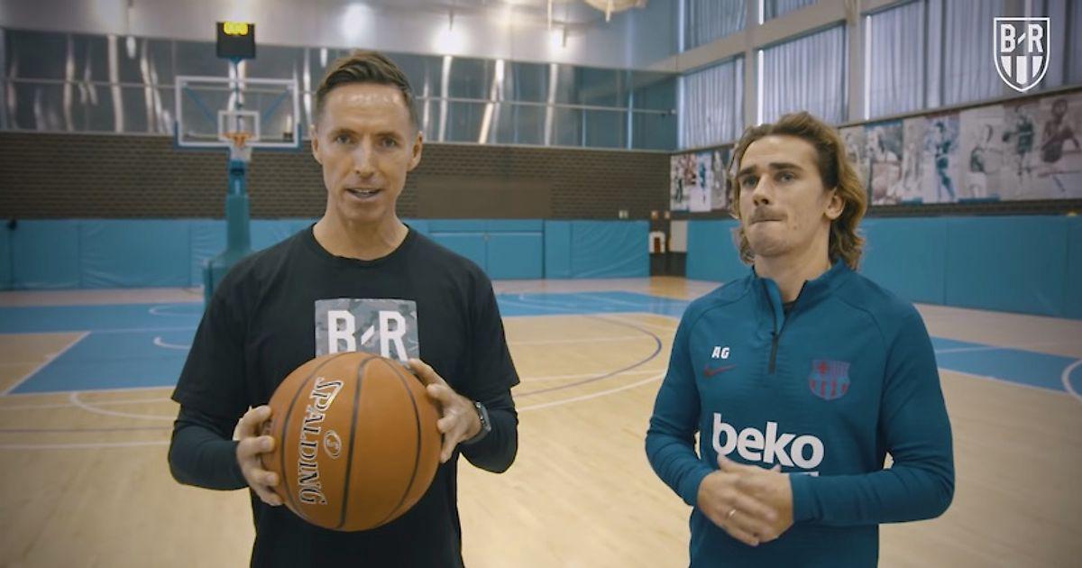 Легенда НБА Стив Нэш заглянул на базу «Барселоны» и сыграл в баскетбол с Антуаном Гризманном. Играли в Burro («козел» или -5): 1-й игрок бросает с любой позиции, 2-й должен повторить. Если не справляется, ему добавляется буква.