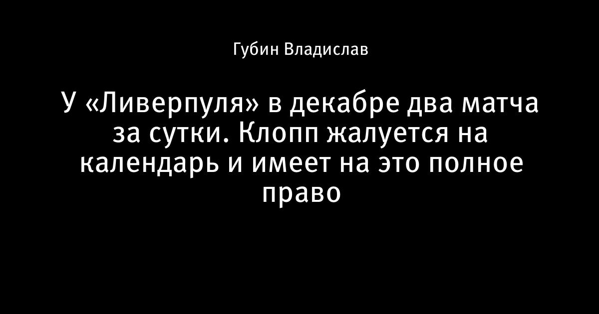 А случай "Ливерпуля" еще более выделяется из нормального положения дел, и об этом точно не стоит молчать. Конечно, можно сказать, что ФИФА и АПЛ допустили серьезную оплошность, но возможности переноса в последний момент просто не было. Они накосячили, но вывод будет сделан, и в дальнейшем такое не повторится. Если же брать календарь в целом, то примерно с такими же сложностями сталкивались и другие клубы, да и общее количество матчей за сезон не меняется уже очень давно. С такими аргументами может отмахнуться от заявлений Клоппа и Гвардиолы довольно легко, но на самом деле проблема гораздо глубже, и нам стоит к ним прислушаться.