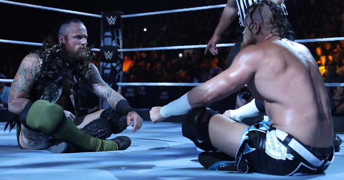 После хайлайта того, как АоР и Роллинс избили Оуэнса к рингу вышли «викинги», а на рингсайде был установлен стол со скатертью KFC, за которым сидели и уплетали крылышки четыре «фаната». Эрик и Айвар в своем стиле объявили открытый вызов, на который откликнулись Люк и Карл, которые тоже вышли с микрофонами и назвали этот открытый вызов таким же убогим, как и Миннеаполис, где проходит это шоу, ведь О.С. являются лучшей командной в мире и единственными людьми, победившими командных чемпионов (это так предсказуемо, что я даже в заголовке об этом написал, ибо это вообще ни разу не спойлер). Они заявили, что это не совсем открытый вызов — это попытка О.С. защитить свою прошлую победу над Viking Raiders. А для «Викингов» это попытка «перекрыть» свое единственное поражение. Начали бой Эрик и Карл, и после типичной борьбы за инициативу, Эрик провел незамысловатый бросок. Тэг Айвару, и командная работа. Около минуты Андерсон пострадал, а затем Люк отвлек Эрика, позволив напарнику атаковать чемпиона со спины. На рингсайде Гэллоуз провел ему суперкик, а потом Карл впечатал в апрон, и по возвращении «легальных» рестлеров в ринг, как говорится, охотник стал жертвой. Попробовал Эрик отбиться — влетел в спайнбастер до 2 и получил командную работу. Так продолжалось пару минут, и «викинг» наконец ушел от атаки Андерсона, передав право ведения боя Айвару. Тот принялся разносить обоих оппонентов, но больше досталось все-таки «легальному» Карлу. Однако, стоило ему попытаться забраться на угол, как Андерсон сбросил его в ринг. Тэг Люку и связка из бэк суплекса и некбрейкера до 2. От следующей командной работы Айвар отбился двойным бэк элбоу (тут Люк чуть-чуть опоздал, и поучился небольшой ботч). Передача тэга Эрику, Thor's Hammer, и Гэллоуз разбил удержание (с трудом успел, что ж у него за день такой?). Эрику после этого досталась бомба, а Айвару биг бут. Эрик с Карлом оказались на рингсайде, позже к ним присоединился Люк, и «викинг» был послан в зрительский зал. Судья тем временем отсчитывал «легальных» Андерсона и Эрика. Карл успел бы вернуться в четырехугольник до счета 10, но Айвар полетел суисайд дайвом на Гэллоуза, который помогал Карлу, а самостоятельно тот идти к рингу уже не мог. В общем, двойной отсчет. После матча O.C. стали избивать Эрика и собрались проломить им KFCшный стол, но чемпионы отбились, и бросили на этот стол Андерсона двойной бомбой.