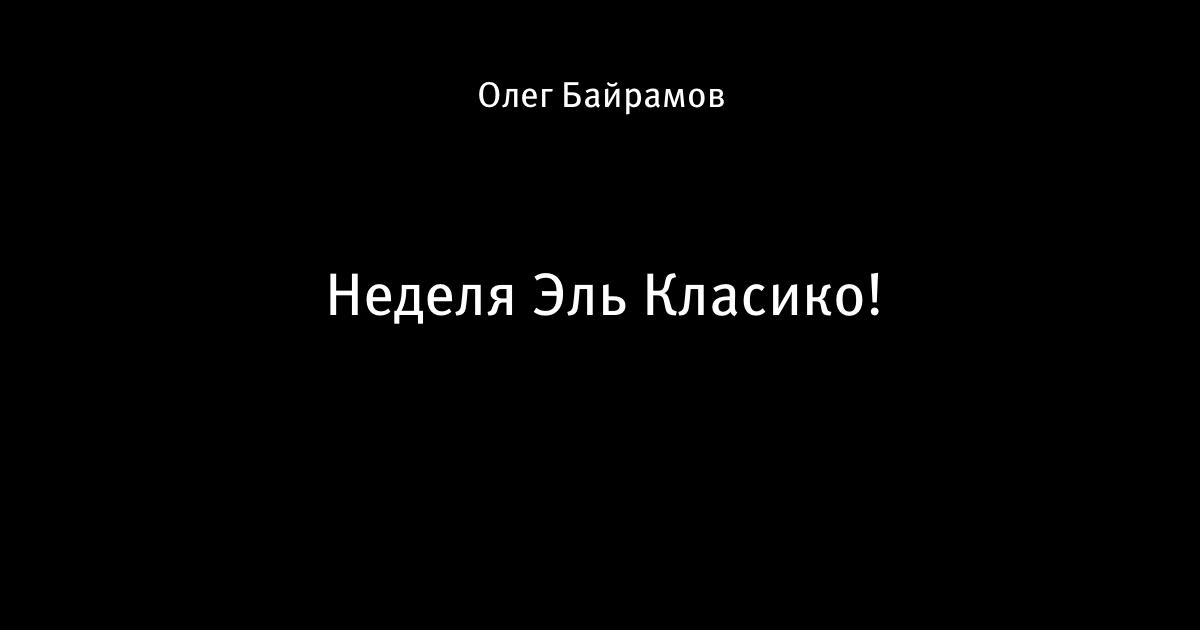 17 декабря 2019, 11:22 Неделя Эль Класико! Этот пост написан пользователем Sports.ru, начать писать может каждый болельщик (сделать это можно здесь). Автор Олег Байрамов