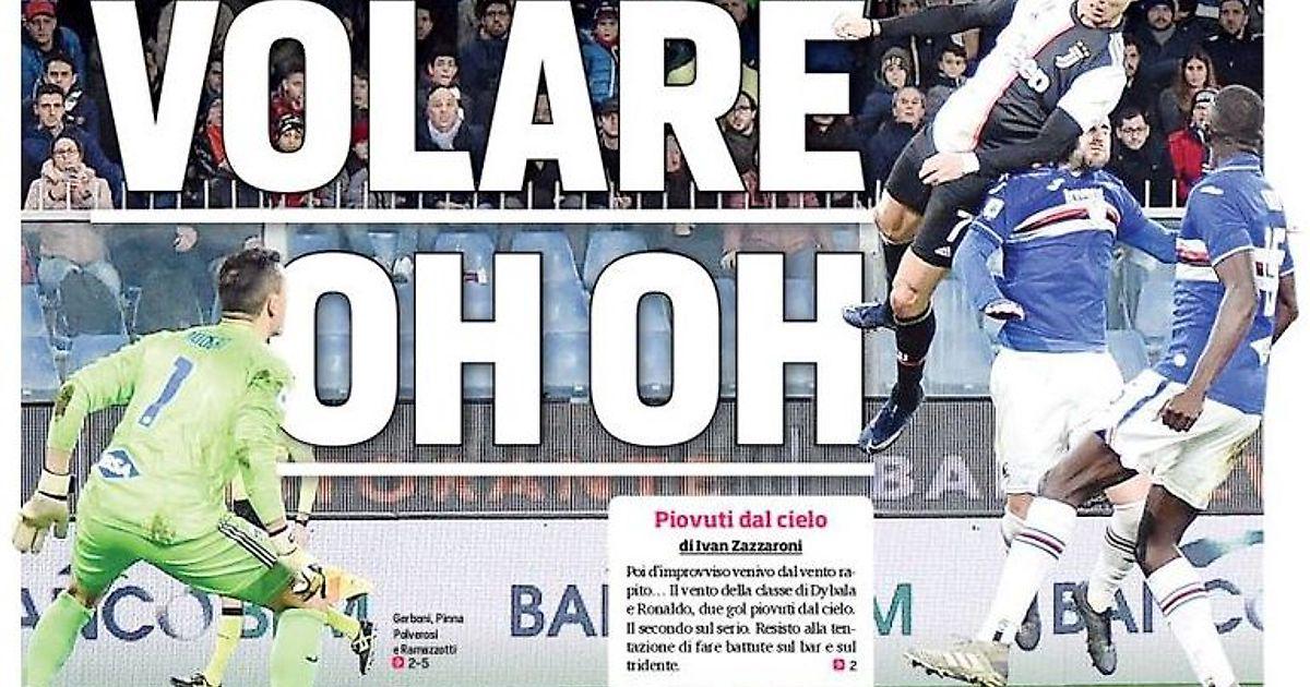 Голова, гол: Роналду поднялся на 2,56! Дибала также забил, «Юве» имеет 3 очка преимущества. Волшебство Криштиану, Раньери: «Напомнил кого-то из НБА». «Самп» сдался, Буффон повторил рекорд Мальдини.