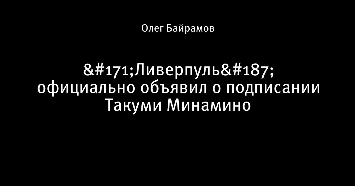 19 декабря 2019, 18:02 «Ливерпуль» официально объявил о подписании Такуми Минамино Этот пост написан пользователем Sports.ru, начать писать может каждый болельщик (сделать это можно здесь). Автор Олег Байрамов