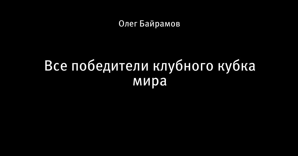22 декабря 2019, 16:40 Все победители клубного кубка мира Этот пост написан пользователем Sports.ru, начать писать может каждый болельщик (сделать это можно здесь). Автор Олег Байрамов