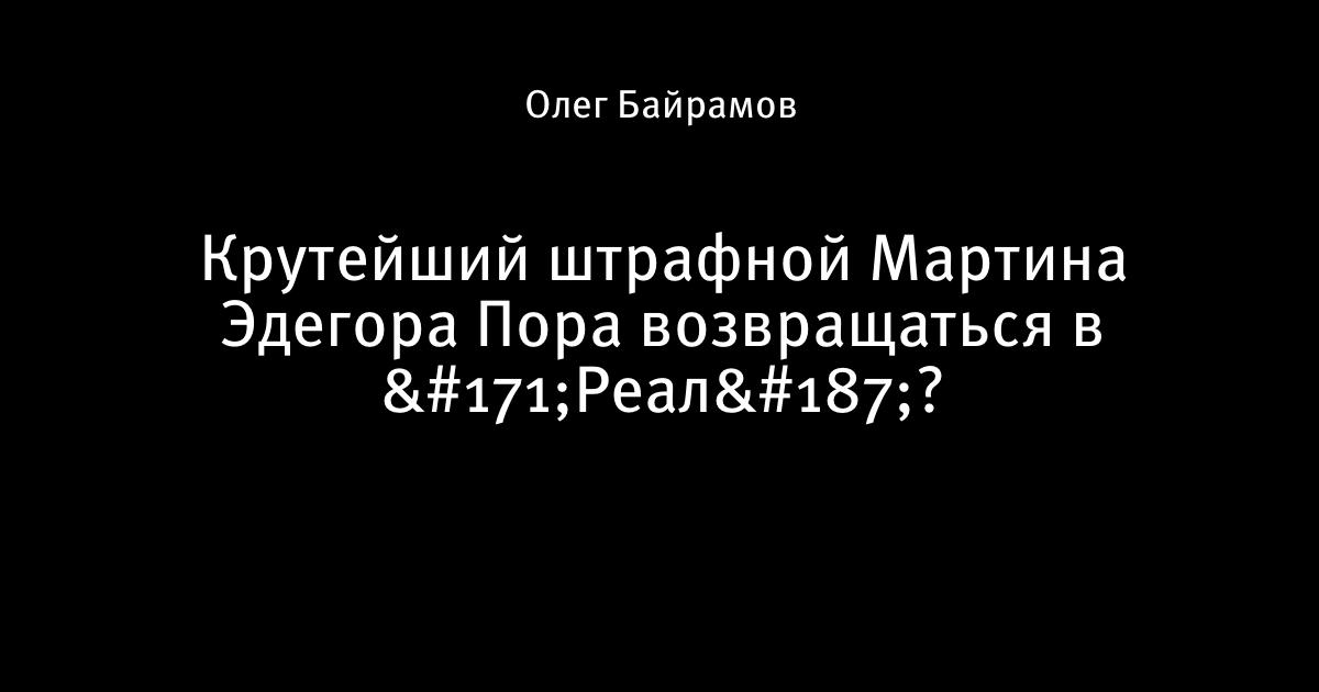 22 декабря 2019, 17:11 Крутейший штрафной Мартина Эдегора 🎯 Пора возвращаться в «Реал»? Этот пост написан пользователем Sports.ru, начать писать может каждый болельщик (сделать это можно здесь). Автор Олег Байрамов