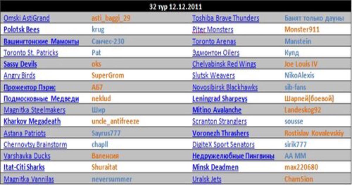 По логике я сегодня должен был бы разбирать матч Angry Birds-Slutsk Weavers, но Слуцк настолько сильно оторвался от всех (от ближайших преследователей, коими являются Недружелюбные Пингвины, отрыв составляет уже 6 очков), что поражение Слуцка мало что изменит в таблице.