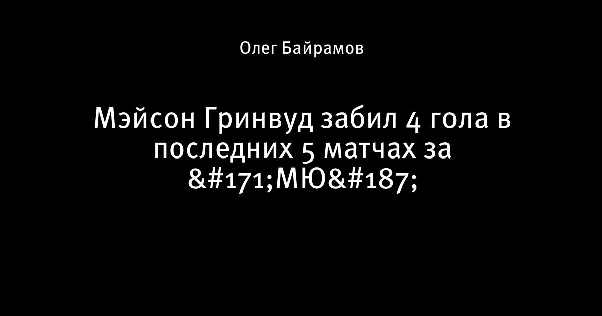 26 декабря 2019, 21:34 Мэйсон Гринвуд забил 4 гола в последних 5 матчах за «МЮ» 🔥 Этот пост написан пользователем Sports.ru, начать писать может каждый болельщик (сделать это можно здесь). Автор Олег Байрамов