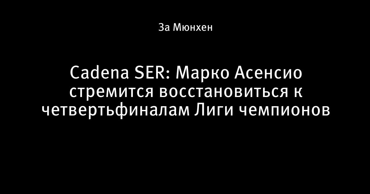 Cadena SER: Марко Асенсио стремится восстановиться к четвертьфиналам Лиги чемпионов