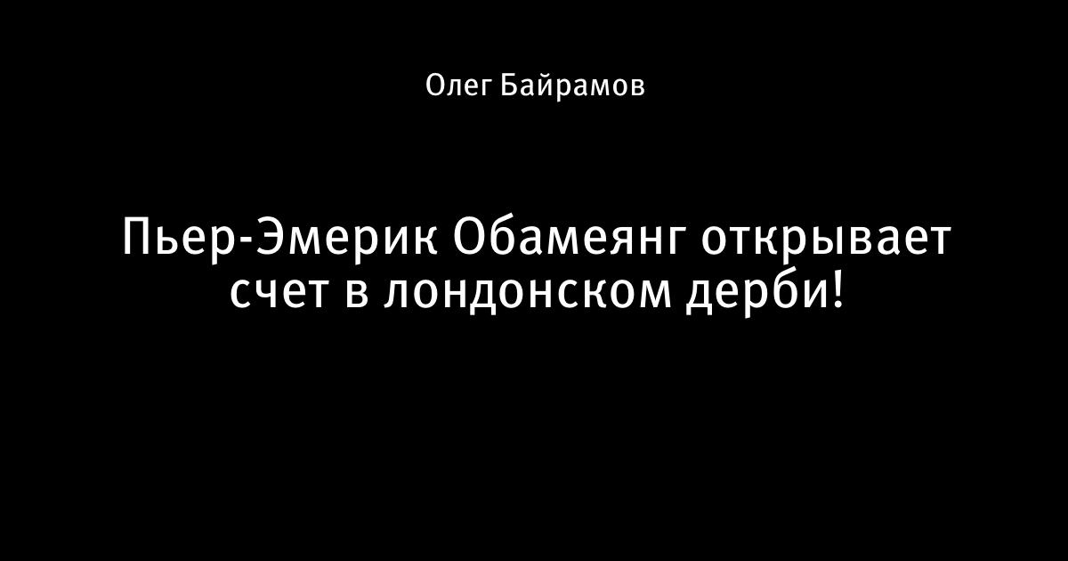 29 декабря 2019, 17:31 Пьер-Эмерик Обамеянг открывает счет в лондонском дерби! 🔥 Этот пост написан пользователем Sports.ru, начать писать может каждый болельщик (сделать это можно здесь). Автор Олег Байрамов