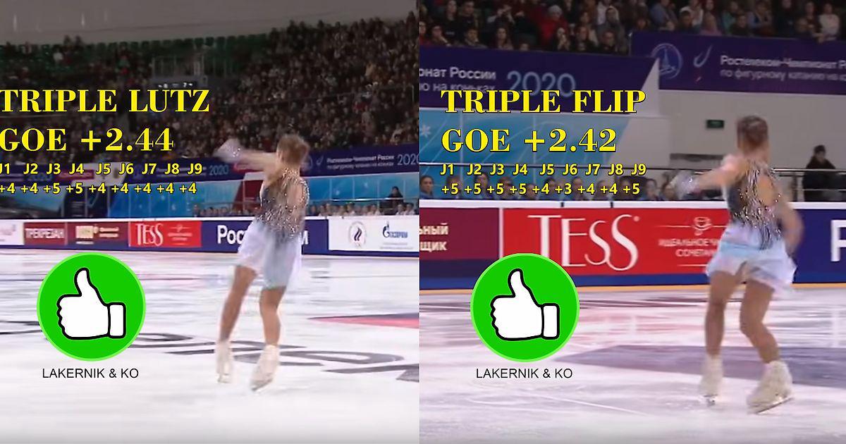 Также для примера я возьму лутцы, в вернее флутцы Рики Кихиры для сравнения. В данном случае я ссылаюсь на официальный и серьезный ресурс. Сайт федерации фигурного катания России и на уважаемого профессионала своего дела Ольгу Еромолину, пресс-атташе федерации, которая сказала, что у Кихиры флутц. Для тех кто не в теме поясняю. Флутц это читерный прыжок не соответствующий критериям лутца, т.е. выполнен не по правилам. И для примера я возьму ещё одну флутцершу Алину Загитову. Это выяснилось совсем недавно на соревнованиях, где она соревновалась с Косторной, у которой идеальный лутц как по учебнику. Судьи увидели эту громадную разницу в качестве этого элемента. Грех было Алине не поставить флутц, даже учитывая статус Олимпийской чемпионки. Как говорится, когда честное судейство, никакие регалии не помогут. Это главный принцип Александра Лакерника, вице президента ИСУ, который работает над улучшением судейства уже не первый год. И в этом году мы уже видим результаты этой плодотворной работы. Не зря человек занимает свой пост.