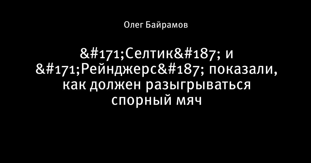 31 декабря 2019, 17:51 «Селтик» и «Рейнджерс» показали, как должен разыгрываться спорный мяч Этот пост написан пользователем Sports.ru, начать писать может каждый болельщик (сделать это можно здесь). Автор Олег Байрамов