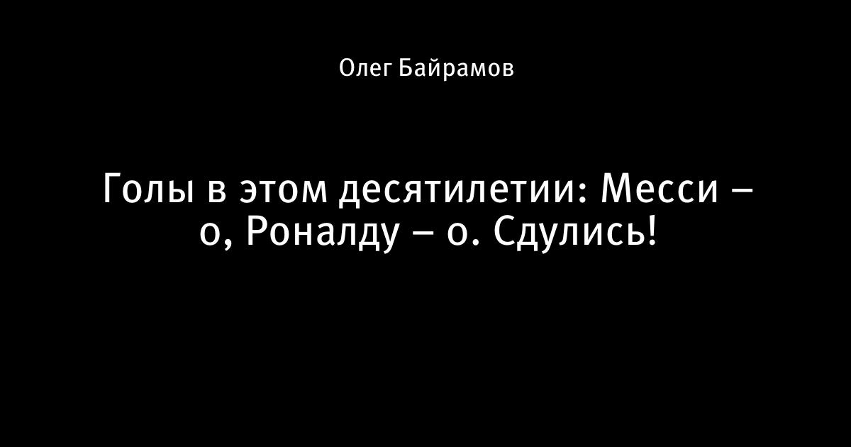 1 января 2020, 14:58 Голы в этом десятилетии: Месси – 0, Роналду – 0. Сдулись! Этот пост написан пользователем Sports.ru, начать писать может каждый болельщик (сделать это можно здесь). Автор Олег Байрамов