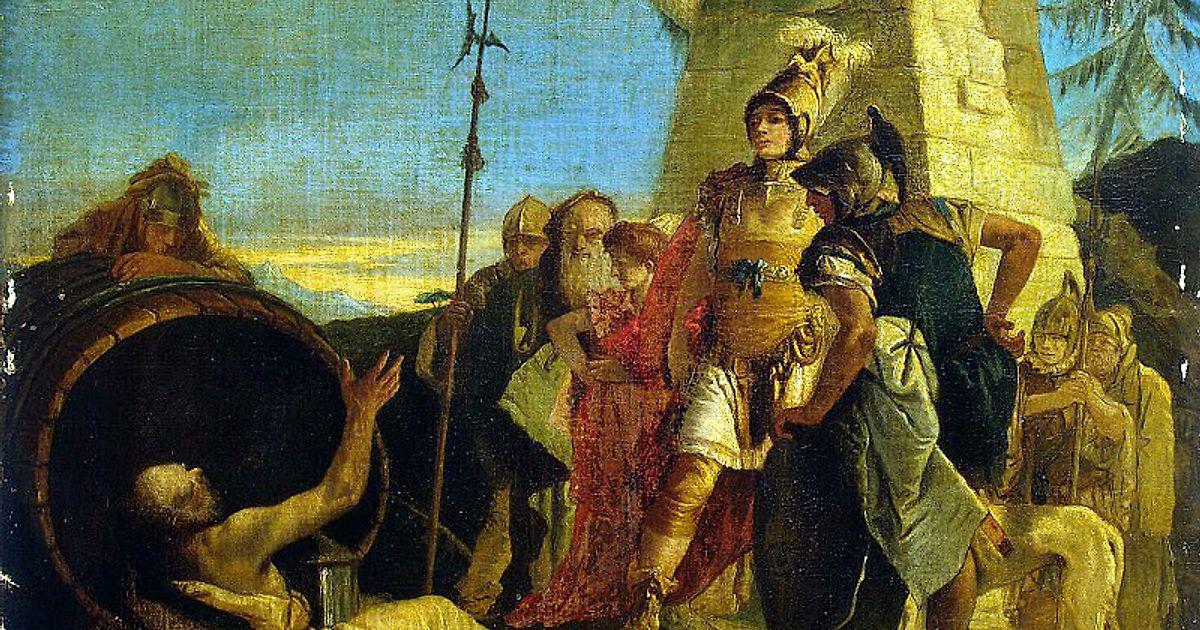 Александр Македонский пошел посмотреть, как живёт философ Диоген.