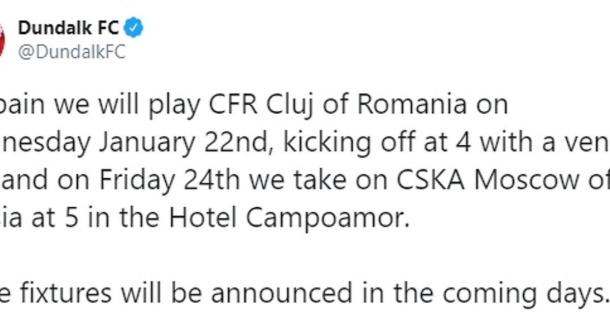 Об этом сообщила пресс-служба ирландского клуба. Матч состоится 24 января в испанском Кампоаморе. Прежде армейцам не приходилось играть против этого клуба. «Дандолк» является действующим чемпионом Ирландии.