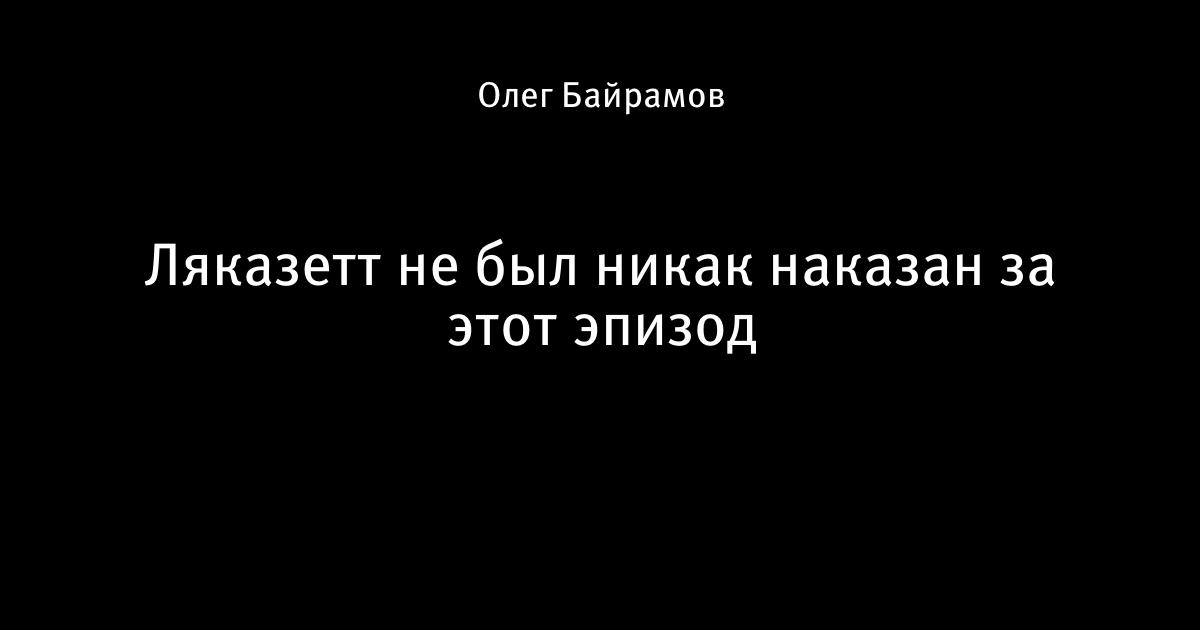 7 января 2020, 01:51 Ляказетт не был никак наказан за этот эпизод Этот пост написан пользователем Sports.ru, начать писать может каждый болельщик (сделать это можно здесь). Автор Олег Байрамов