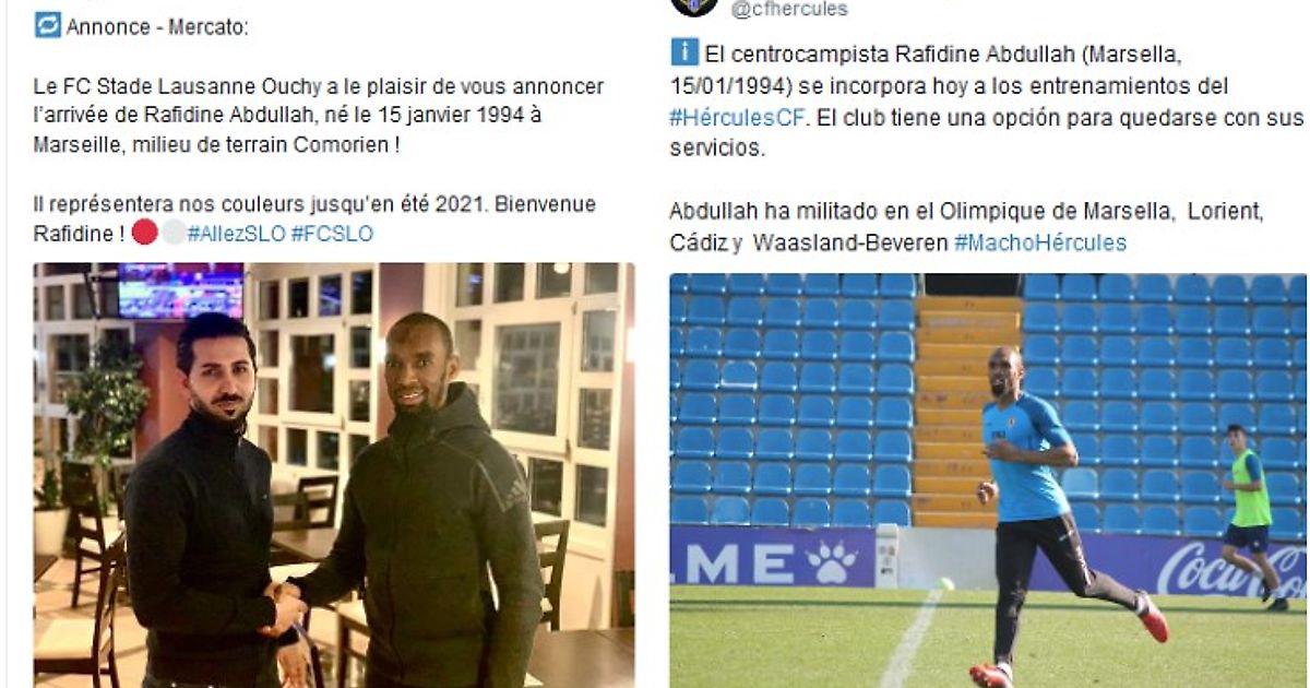 ℹ El centrocampista Rafidine Abdullah (Marsella, 15/01/1994) se incorpora hoy a los entrenamientos del #HérculesCF. El club tiene una opción para quedarse con sus servicios.