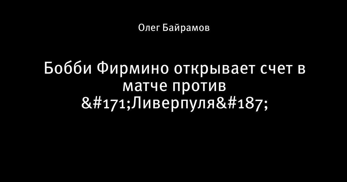 11 января 2020, 21:44 Бобби Фирмино открывает счет в матче против «Ливерпуля» Этот пост написан пользователем Sports.ru, начать писать может каждый болельщик (сделать это можно здесь). Автор Олег Байрамов