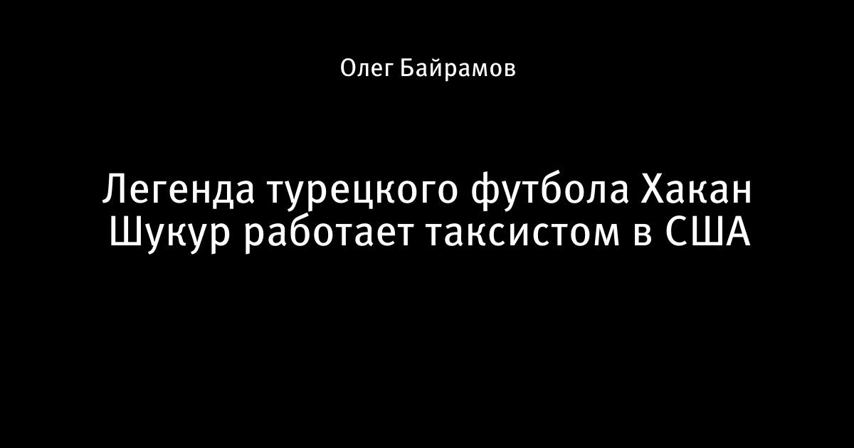 15 января 2020, 10:25 Легенда турецкого футбола Хакан Шукур работает таксистом в США 😱 Этот пост написан пользователем Sports.ru, начать писать может каждый болельщик (сделать это можно здесь). Автор Олег Байрамов