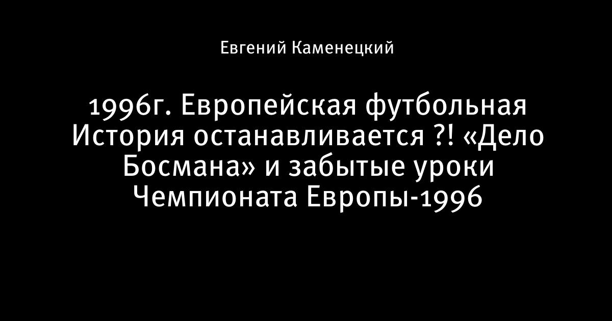 1996г. Европейская футбольная История останавливается ?! «Дело Босмана» и забытые уроки Чемпионата Европы-1996