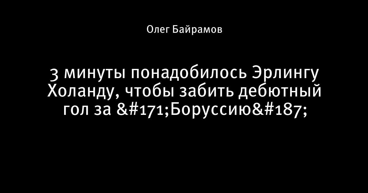 18 января 2020, 18:58 3 минуты понадобилось Эрлингу Холанду, чтобы забить дебютный гол за «Боруссию» ⚡ Этот пост написан пользователем Sports.ru, начать писать может каждый болельщик (сделать это можно здесь). Автор Олег Байрамов