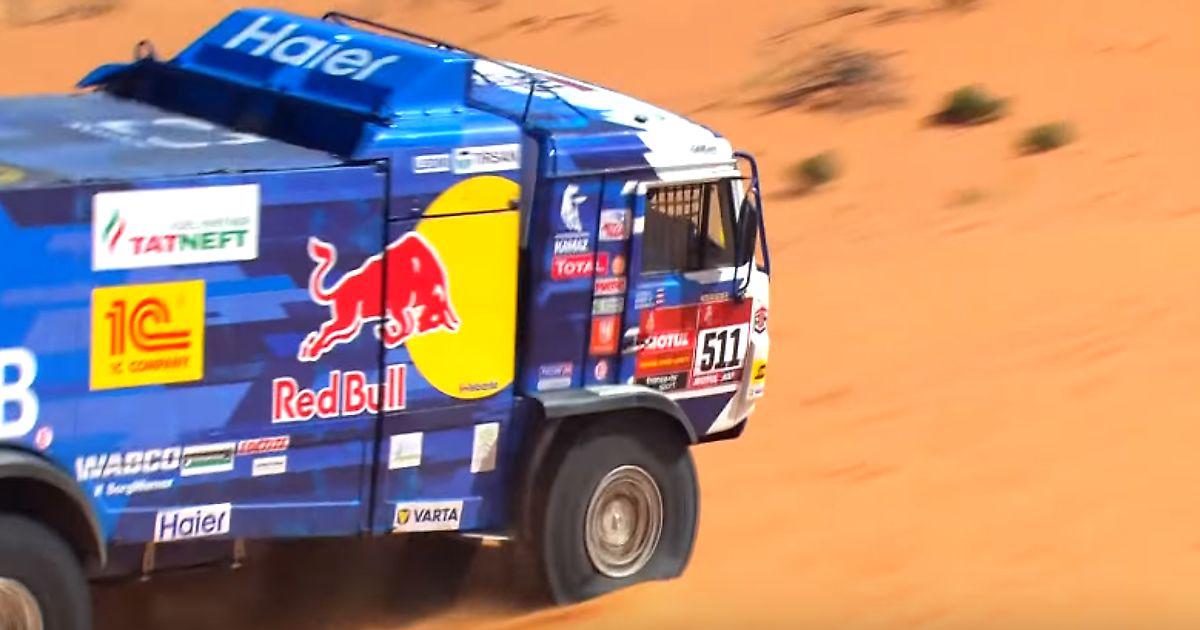 Прыжки грузовиков на «Дакаре» – это мощь. Шины на «КАМАЗах» проминаются до ободов
