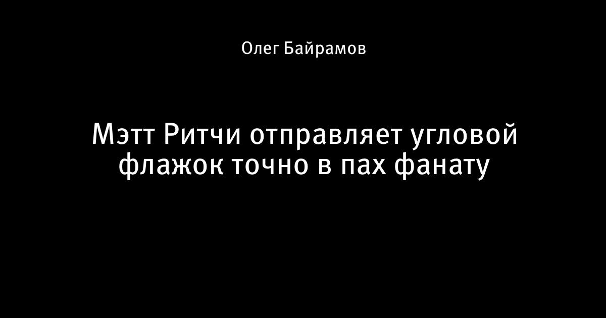 19 января 2020, 14:53 Мэтт Ритчи отправляет угловой флажок точно в пах фанату Этот пост написан пользователем Sports.ru, начать писать может каждый болельщик (сделать это можно здесь). Автор Олег Байрамов