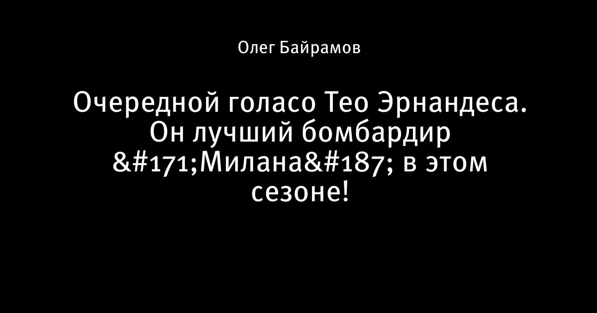 19 января 2020, 16:45 Очередной голасо Тео Эрнандеса. Он лучший бомбардир «Милана» в этом сезоне! 🔥 Этот пост написан пользователем Sports.ru, начать писать может каждый болельщик (сделать это можно здесь). Автор Олег Байрамов