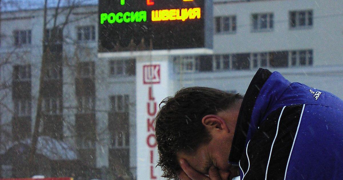 30 марта 2003. Архангельск, стадион «Труд». Главный тренер Швеции Кент Хультквист за минуту до окончания финального матча XXIII чемпионата мира Россия — Швеция — 4:5