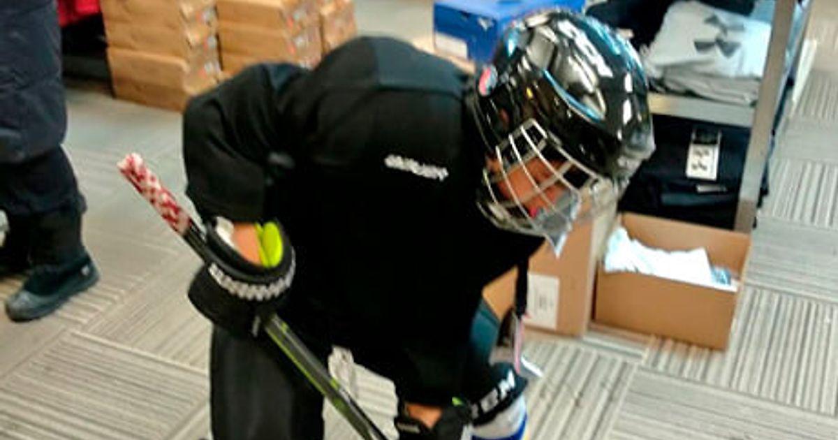 Он выбрал комплект защиты, клюшку Сидни Кросби и ленту с канадским флагом – хотел играть именно с ним.