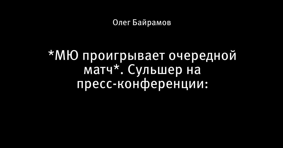 21 января 2020, 14:06 *МЮ проигрывает очередной матч*. Сульшер на пресс-конференции: Этот пост написан пользователем Sports.ru, начать писать может каждый болельщик (сделать это можно здесь). Автор Олег Байрамов