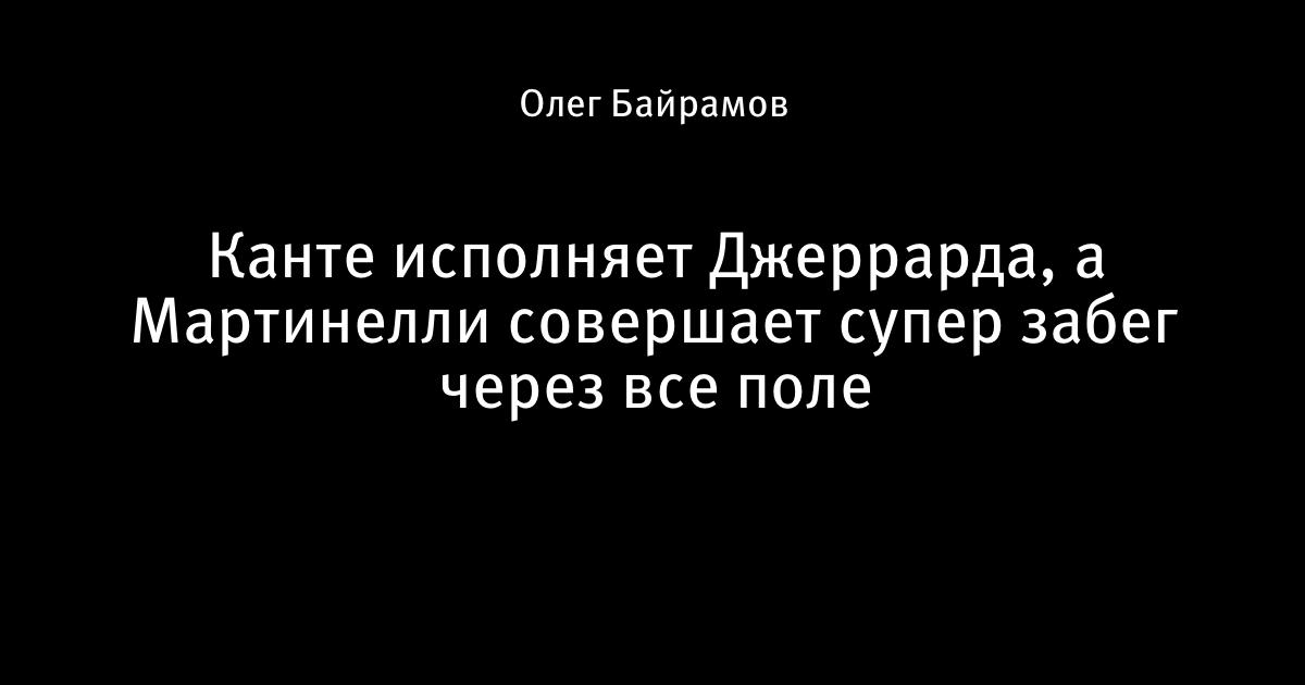 22 января 2020, 00:43 Канте исполняет Джеррарда, а Мартинелли совершает супер забег через все поле 🔥 Этот пост написан пользователем Sports.ru, начать писать может каждый болельщик (сделать это можно здесь). Автор Олег Байрамов