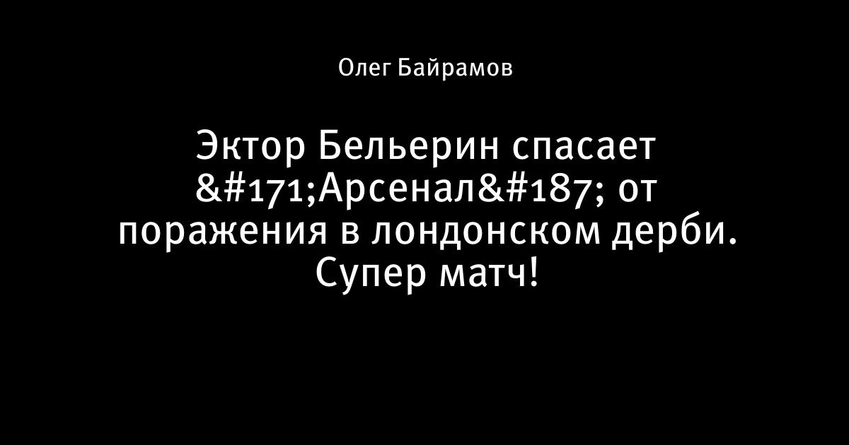 22 января 2020, 01:23 Эктор Бельерин спасает «Арсенал» от поражения в лондонском дерби. Супер матч! 🔥 Этот пост написан пользователем Sports.ru, начать писать может каждый болельщик (сделать это можно здесь). Автор Олег Байрамов