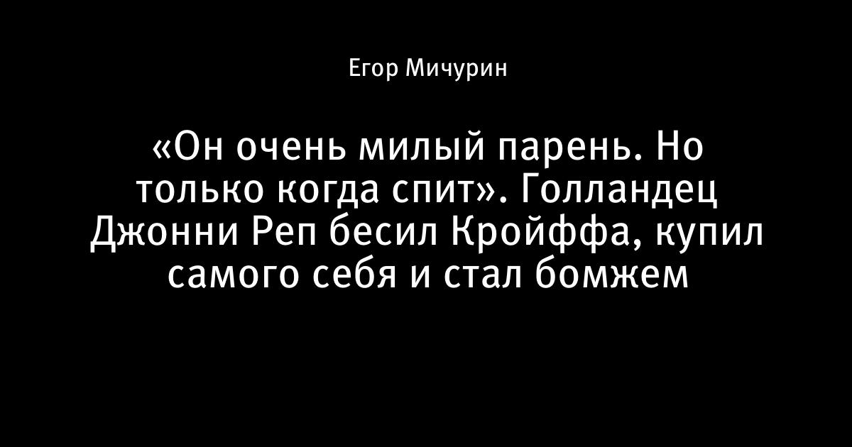 «Он очень милый парень. Но только когда спит». Голландец Джонни Реп бесил Кройффа, купил самого себя и стал бомжем