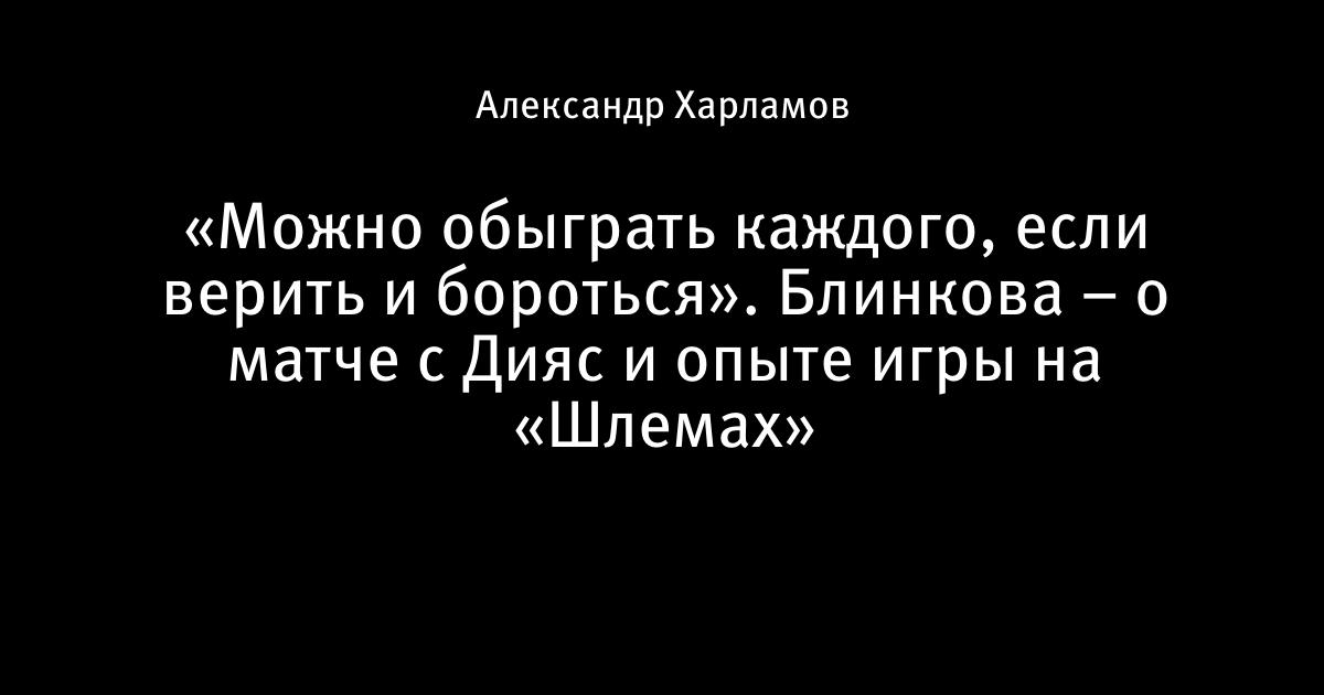 «Можно обыграть каждого, если верить и бороться». Блинкова – о матче с Дияс и опыте игры на «Шлемах»
