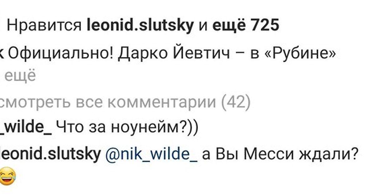 22 января 2020, 16:37 Леонид Слуцкий прокомментировал переход Йевтича в «Рубин» Этот пост написан пользователем Sports.ru, начать писать может каждый болельщик (сделать это можно здесь). Автор Олег Байрамов
