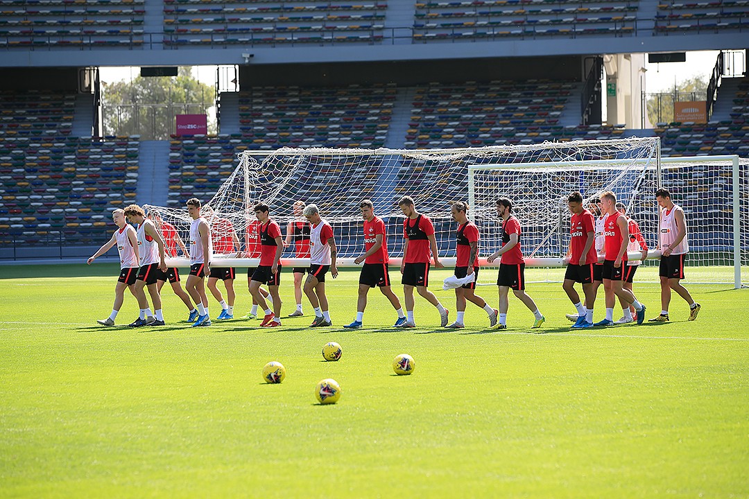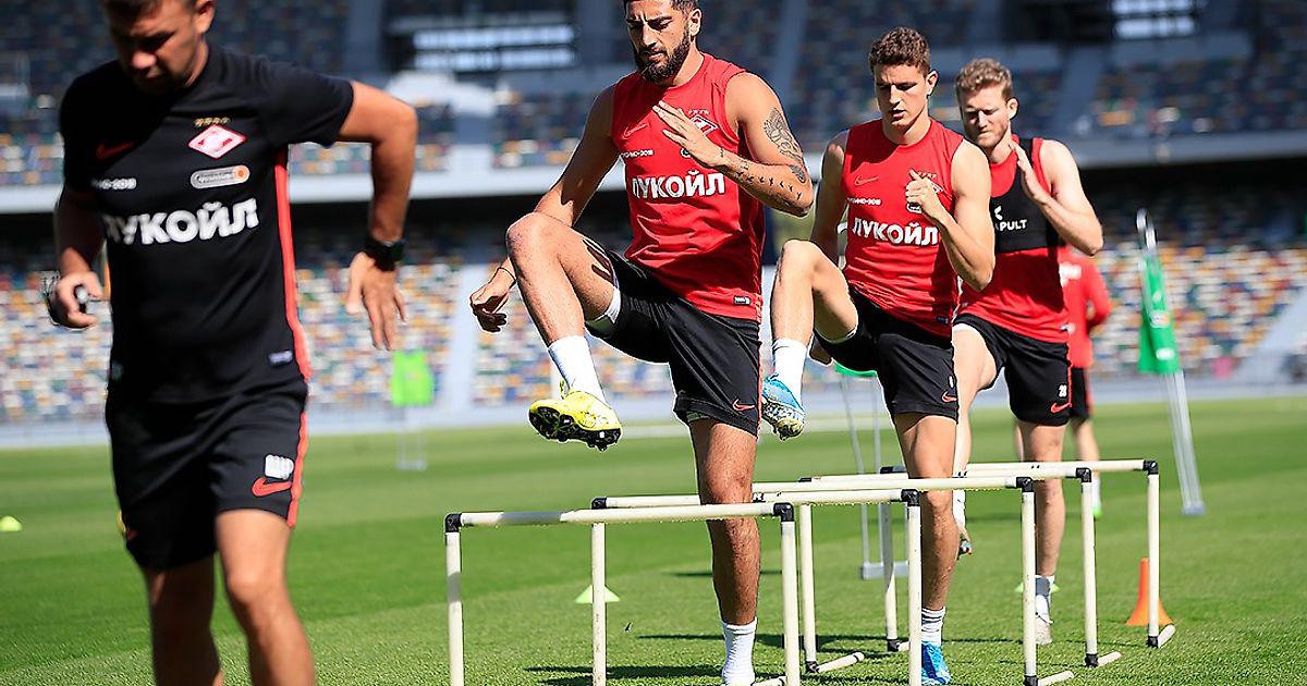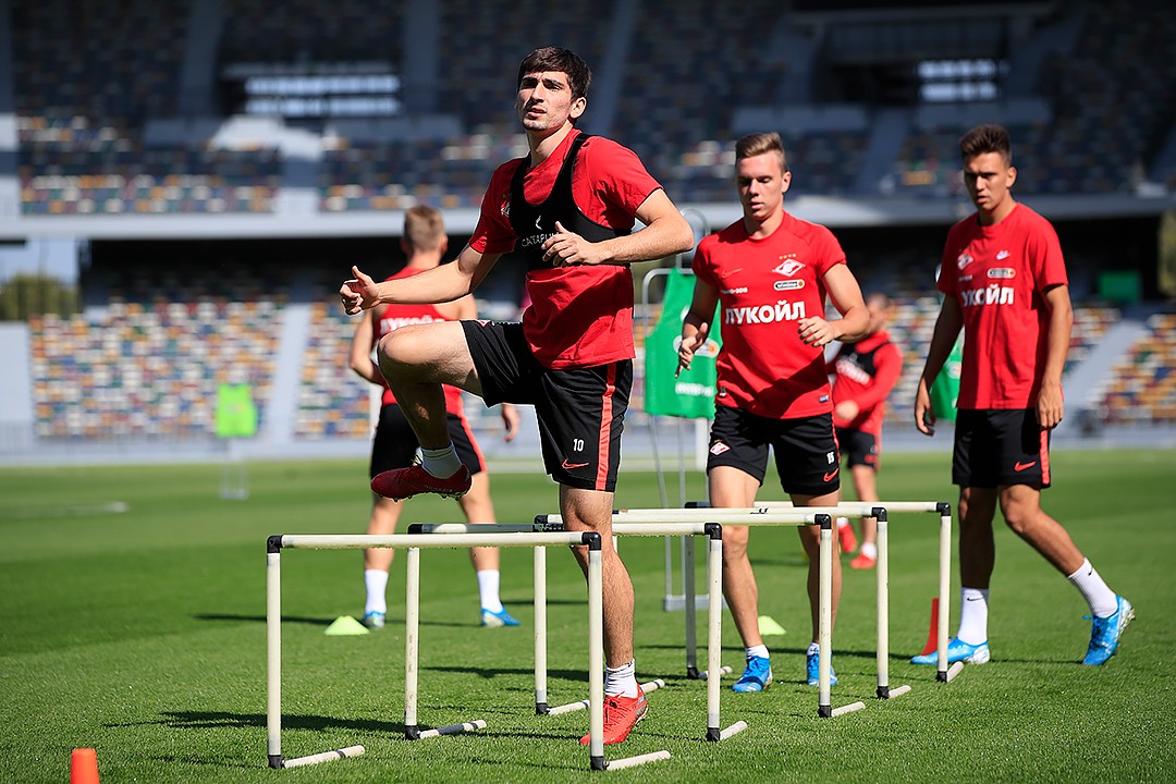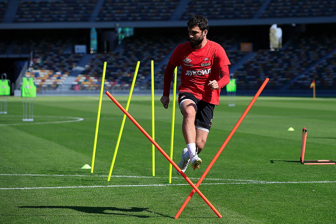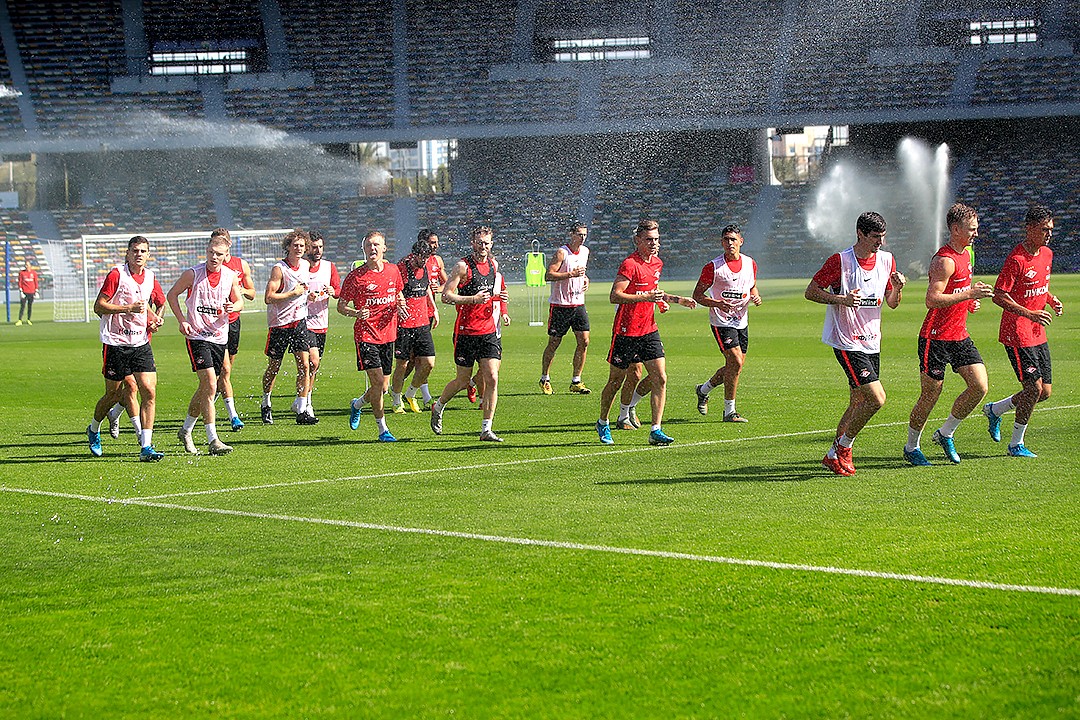 В среду «Спартак» провел две тренировки на сборе в ОАЭ. В ходе первого занятия, которое прошло под жарким солнцем Абу-Даби, игроки красно-белых оттачивали взаимодействие в атаке. Для лучшего обзора главный тренер Доменико Тедеско наблюдал за действиями футболистов с верхних рядов трибуны.