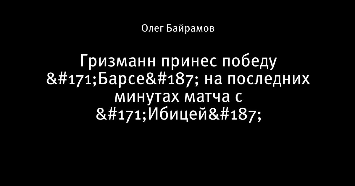 22 января 2020, 23:44 Гризманн принес победу «Барсе» на последних минутах матча с «Ибицей» Этот пост написан пользователем Sports.ru, начать писать может каждый болельщик (сделать это можно здесь). Автор Олег Байрамов