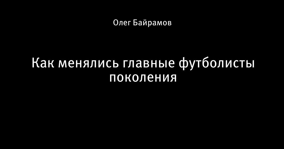 24 января 2020, 01:04 Как менялись главные футболисты поколения Этот пост написан пользователем Sports.ru, начать писать может каждый болельщик (сделать это можно здесь). Автор Олег Байрамов